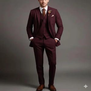 Man Maroon Tweed Suit | Men's 3 Piece Suit | Wedding Suit For Groom | Groomsman, Dinner Party Wear Suit | Customize Suit | Engagement Suit |