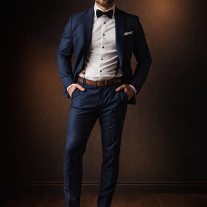Customization options are available to ensure a perfect fit. Simply provide your measurements, and our expert tailors will craft a tuxedo that fits you flawlessly. This suit also makes an excellent gift for him — groom, husband, fiancé, or partner.