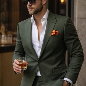 Make a powerful style statement with this elegant men’s emerald green tuxedo, crafted for grooms, wedding receptions, black-tie events, and formal parties. The rich emerald green color paired with a contrasting black lapel creates a timeless yet modern tuxedo look that stands out with sophistication.