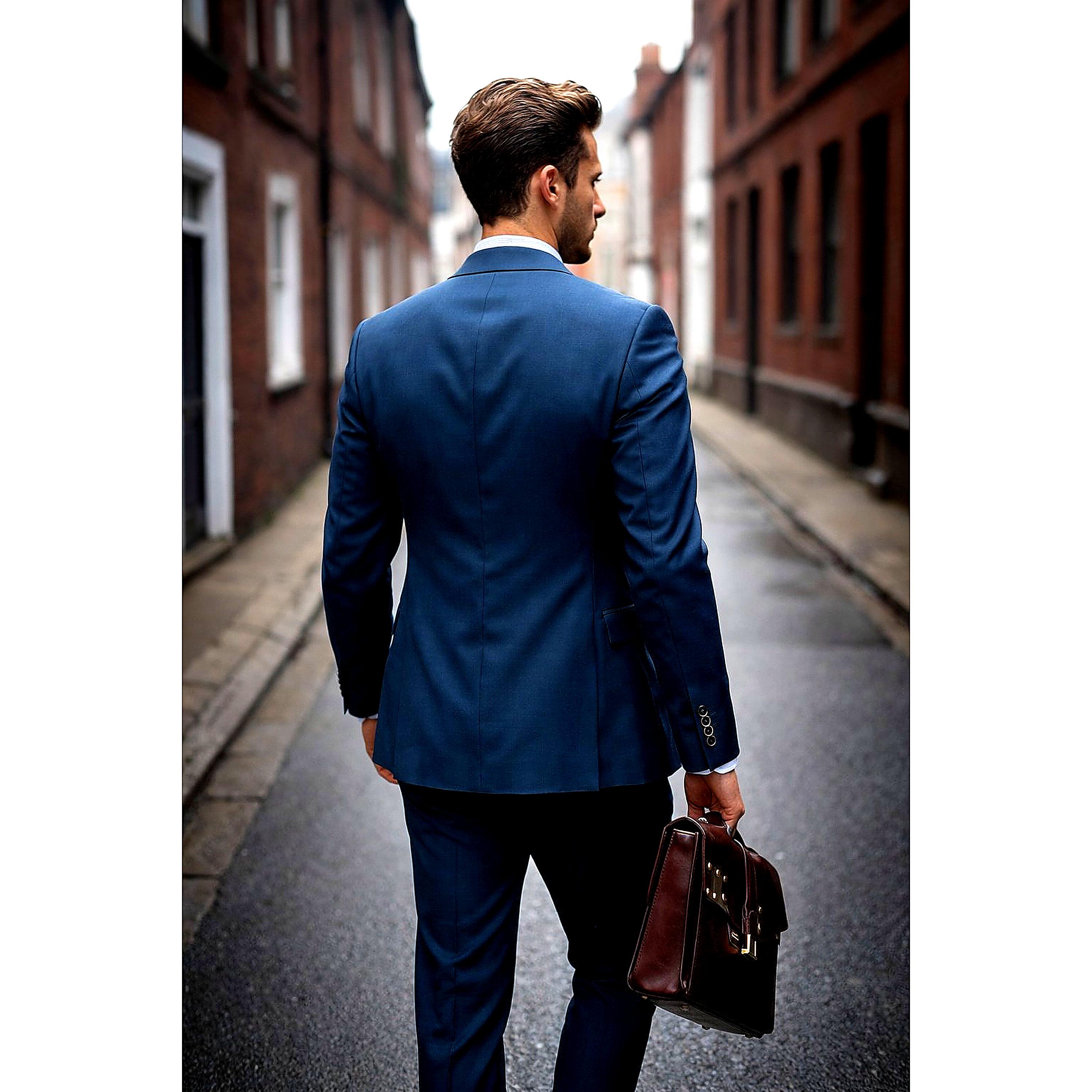Men's Blue Three-Piece Suit | Business Formal Wedding Dinner Party Engagement