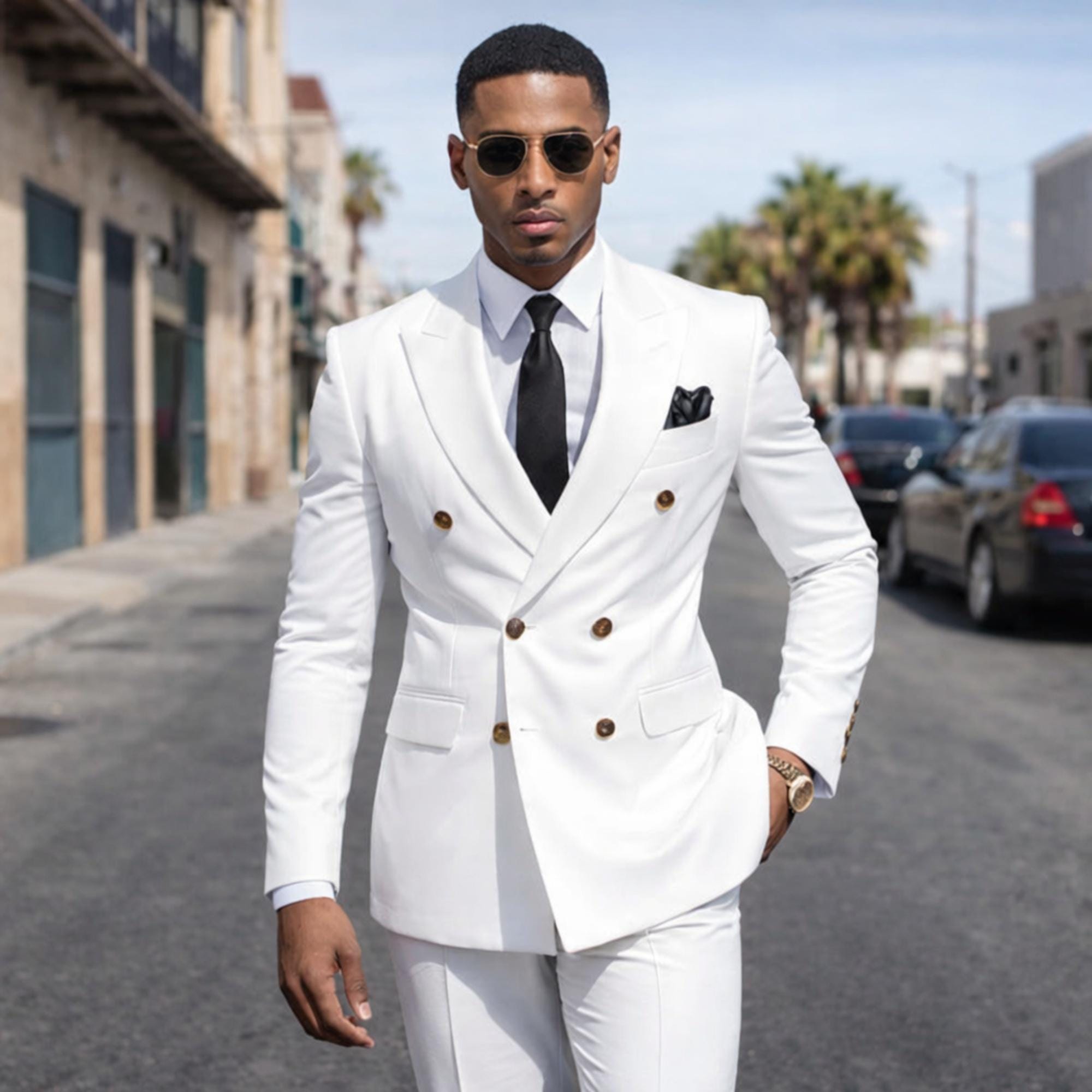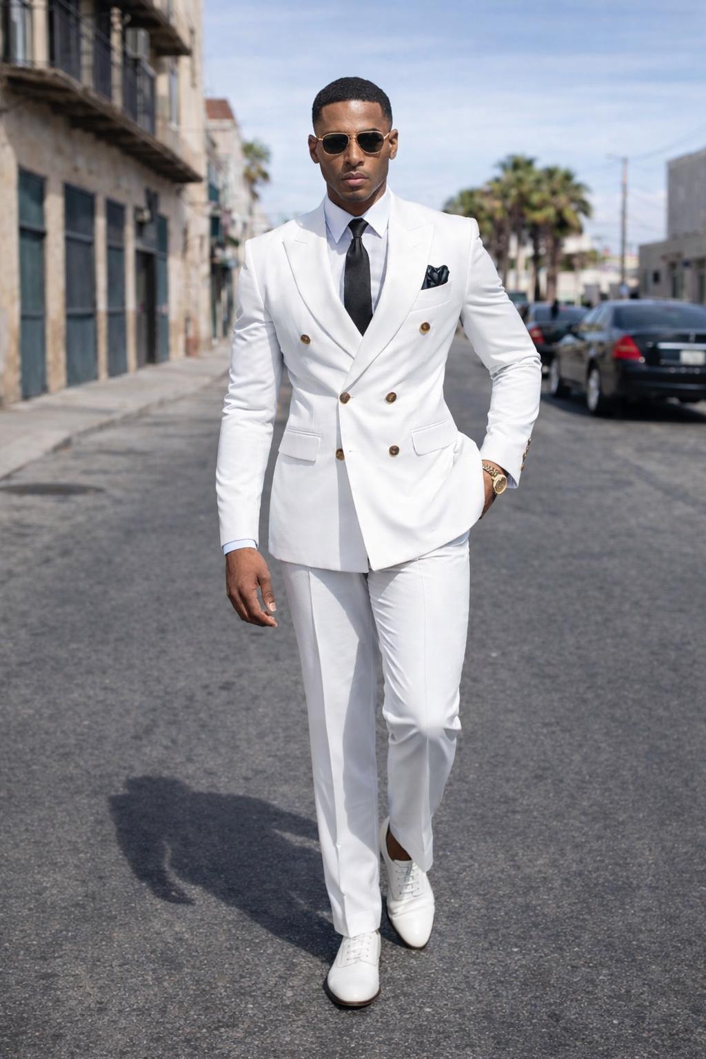 Make a powerful style statement with our luxury white double-breasted suit, designed for the modern gentleman who values elegance, confidence, and timeless sophistication.