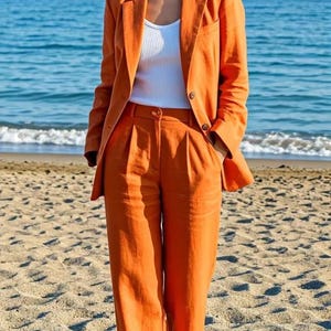 Elegant Women’s Orange 3-Piece Suit | Women's Luxury Blazer Vest And Trousers Set | Power Dressing | Men’s Formal Attire | Workwear Suits |