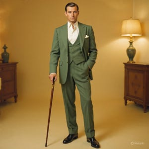 The suit includes a classic two-button jacket with notch lapels, a matching vest, and tapered pants with a flat front. The jacket features three flap pockets, a chest pocket, and four interior pockets for storing your essentials. The two side vents provide added comfort and flexibility, allowing you to move freely without sacrificing style.