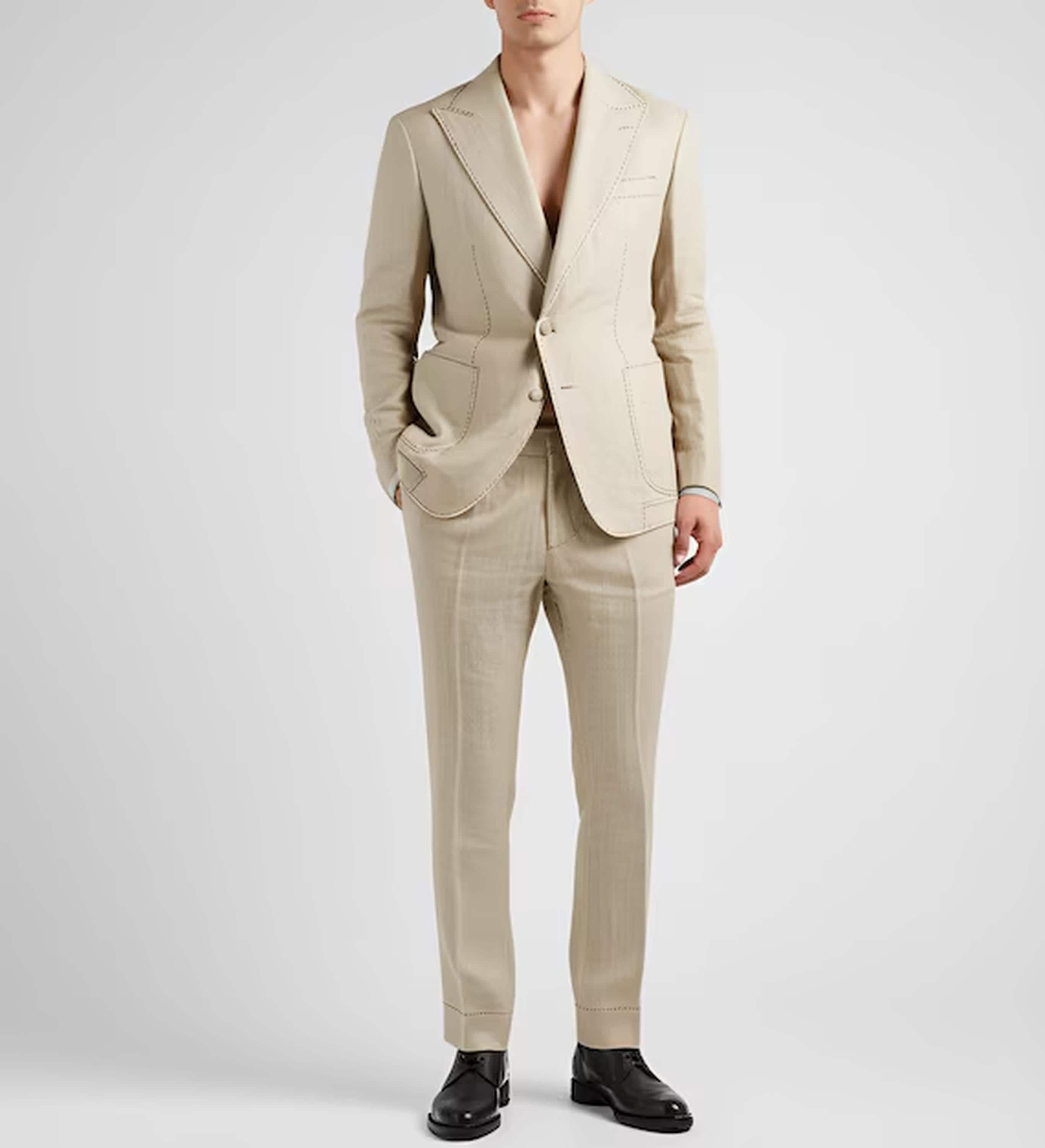 🧥 Beige Linen Suit for Men – Slim Fit Two-Piece with Single Button