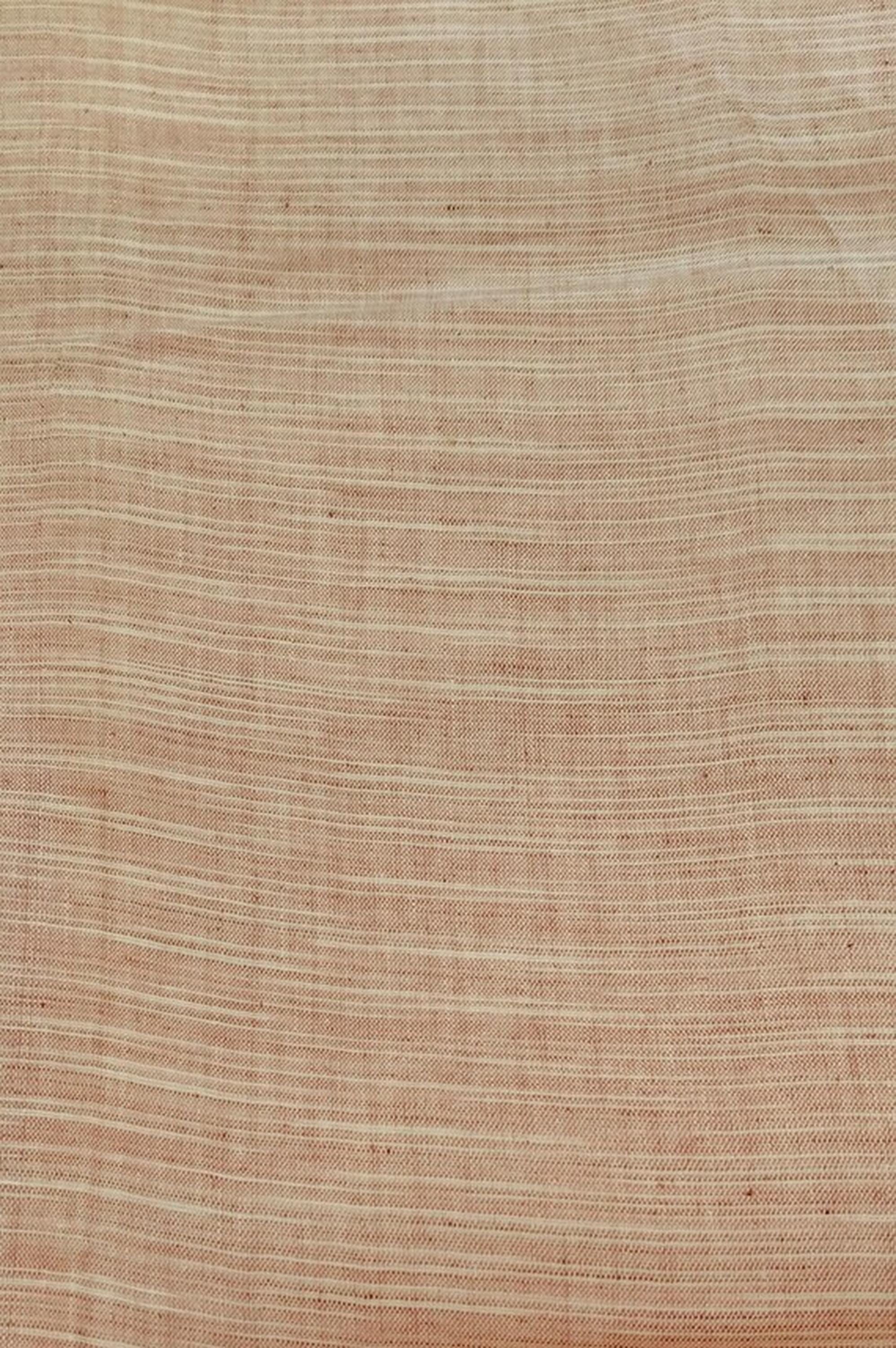 This suit is made from pure khadi cotton, handwoven by skilled artisans in rural Indian villages. The light pink base is enhanced with delicate white textured weaves, creating depth, character, and a naturally elegant finish. Each piece carries slight variations—an authentic hallmark of handwoven fabric that makes every suit truly one of a kind.