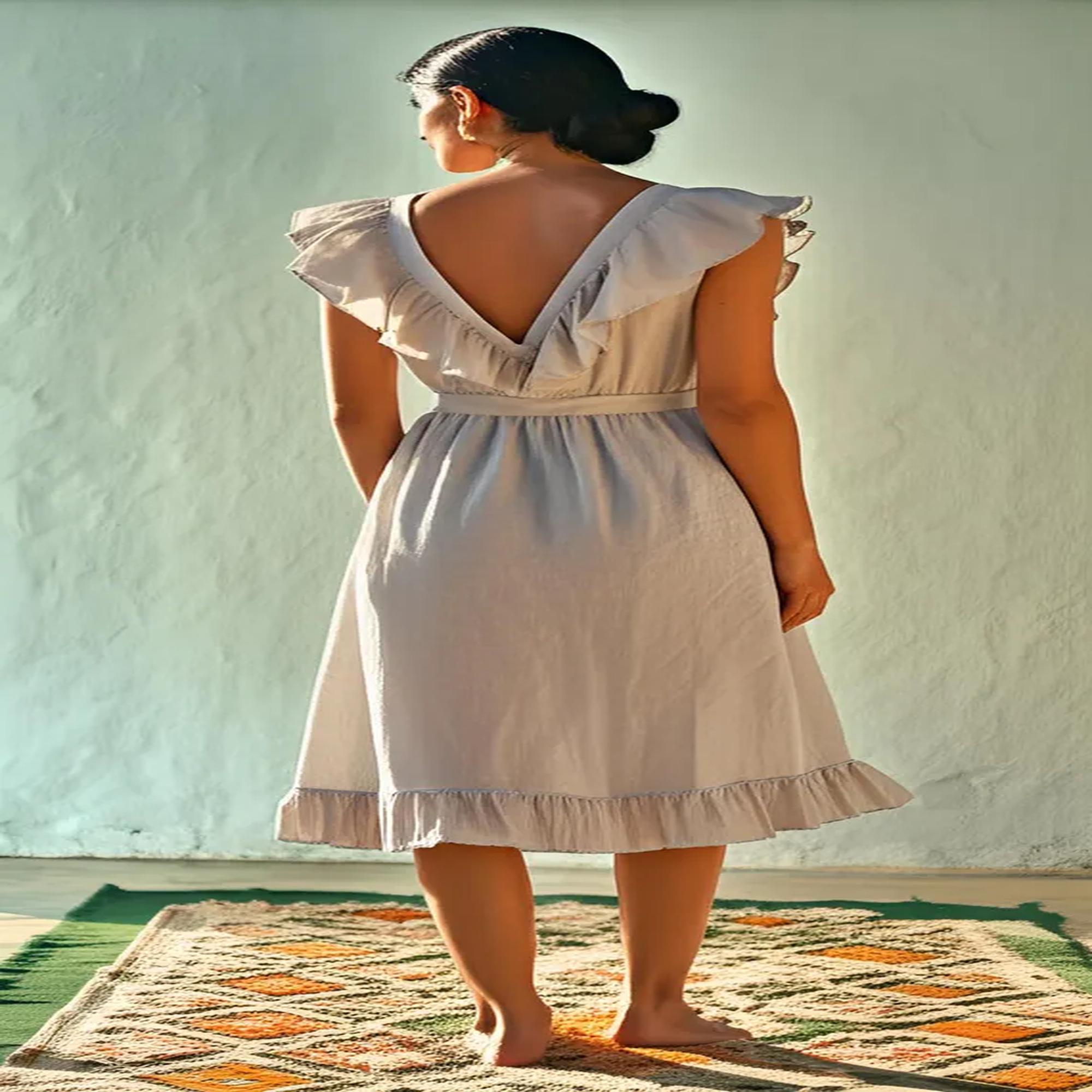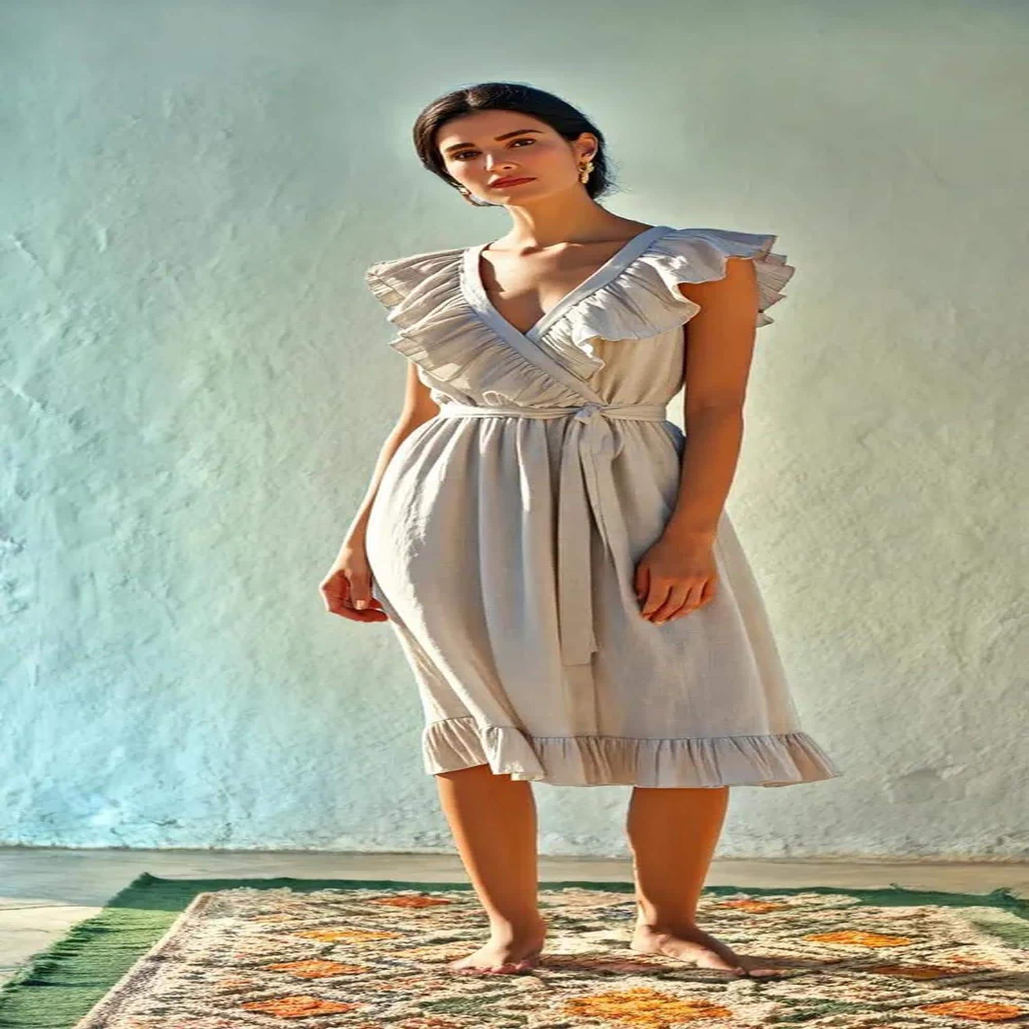 earthy linen dress, perfect for warm weather and sunny days. Made from high-quality, breathable linen fabric, this flowing midi dress provides unmatched comfort while keeping you cool. The relaxed fit, combined with charming ruffle details on the sleeves and hem, adds a touch of boho chic and feminine elegance. Ideal for beach trips, outdoor brunches, garden parties, or casual everyday wear, this eco-friendly, handmade dress is designed to elevate your summer wardrobe. Versatile and stylish, it pairs beautifully with sandals, wedges, or flats. Available in natural, earthy tones, this sustainable linen dress is a must-have for those seeking comfortable, eco-conscious fashion with a touch of sophistication.
