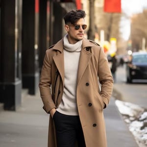 PRODUCT DESCRIPTION Sophisticated Elegance with Distinguished Belt Detail Make a commanding statement with this luxury men's belted overcoat that perfectly combines timeless sophistication with modern tailoring. The distinctive belt detail adds refined structure while maintaining the classic elegance expected from premium outerwear. ✨ Key Features: