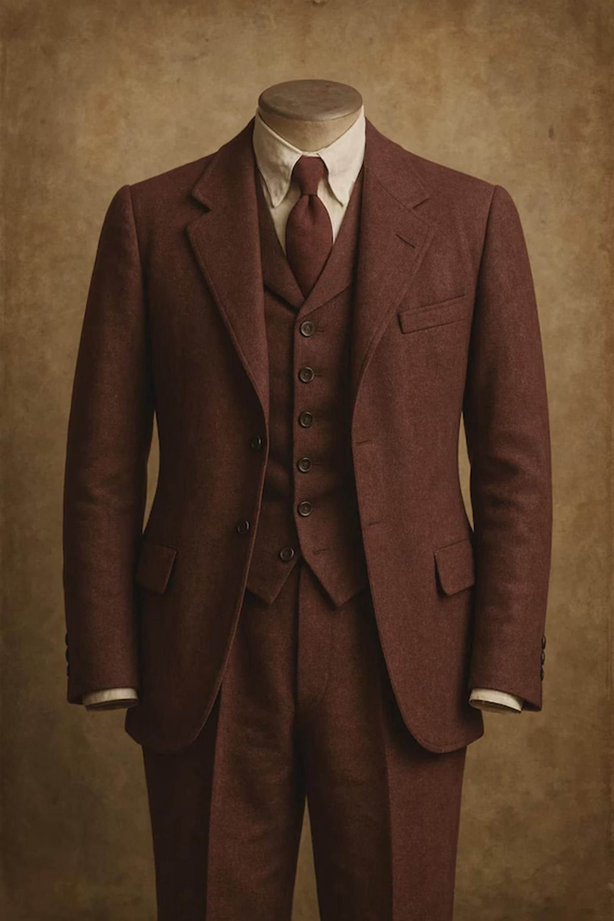 brown wool 3-piece suit, OCM fabric suit, vintage wedding suit men, wool blend formal suit, heritage men's suit, classic brown suit men, bespoke wedding suit men, OCM wool suit